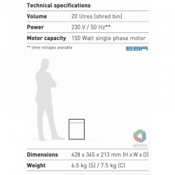 Penghancur Kertas EBA 1126 S adalah penghancur kertas deskside yang mudah digunakan. Saklar multifungsi Easy Multi Touch untuk stand-by / stop (off) / mundur untuk status operasional shredder.